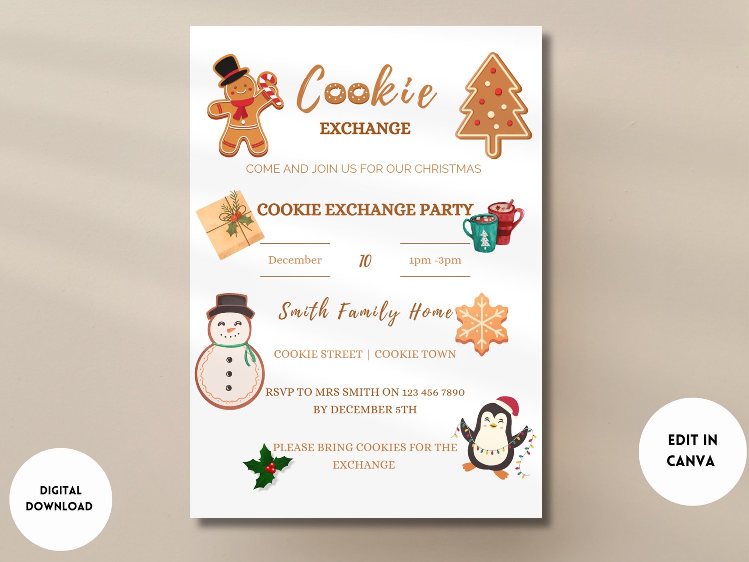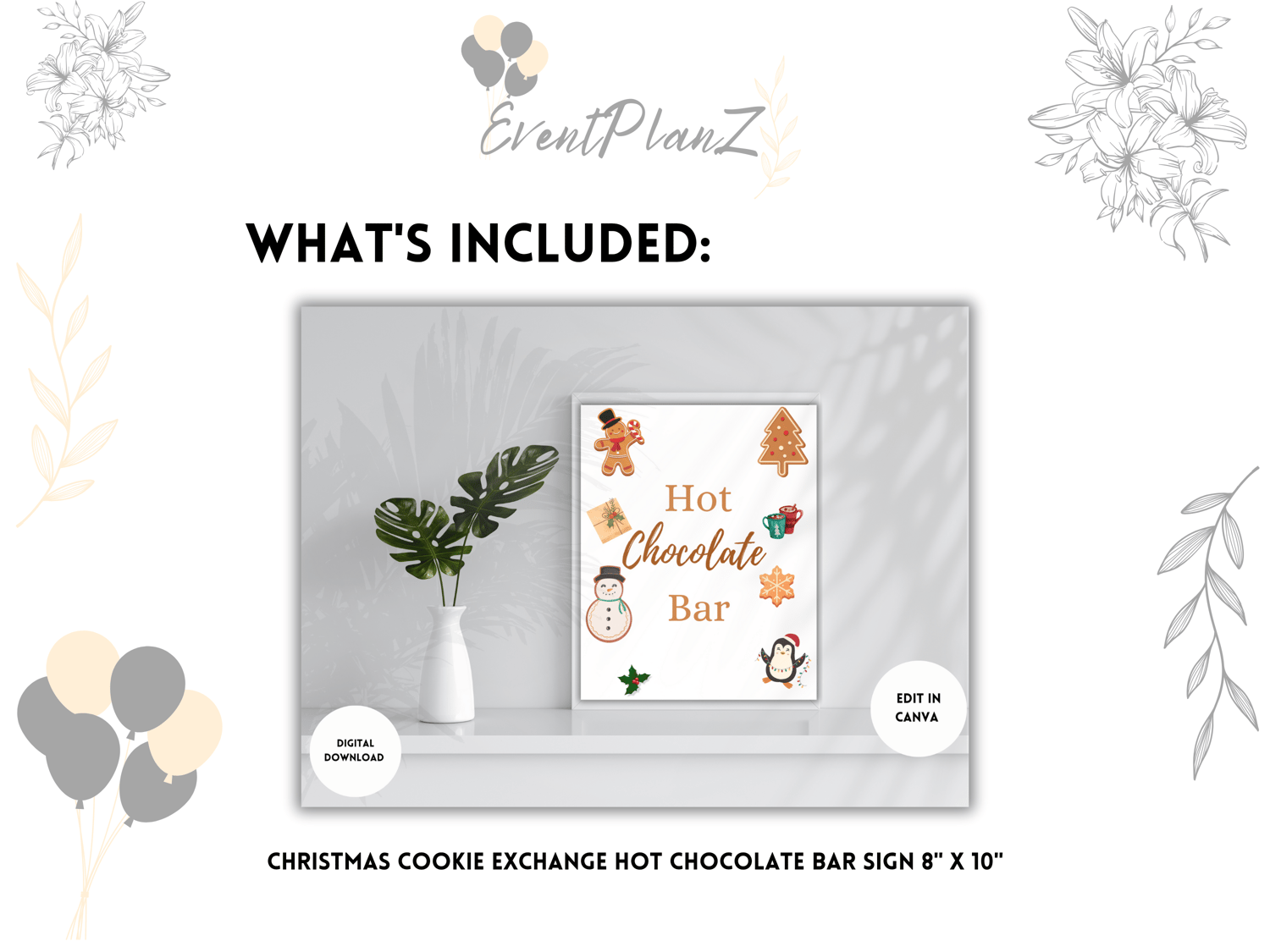 Christmas Cookie Exchange Party Hot Chocolate Bar Sign | Xmas Cocoa Stand | Treat Swap | Canva Template | Printable Paper Stationery