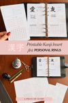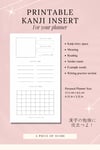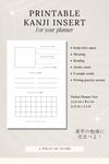 ✏️🌸 📓Printable Kanji Study Organizer Insert for Planners - Includes Pocket and Personal Sizes