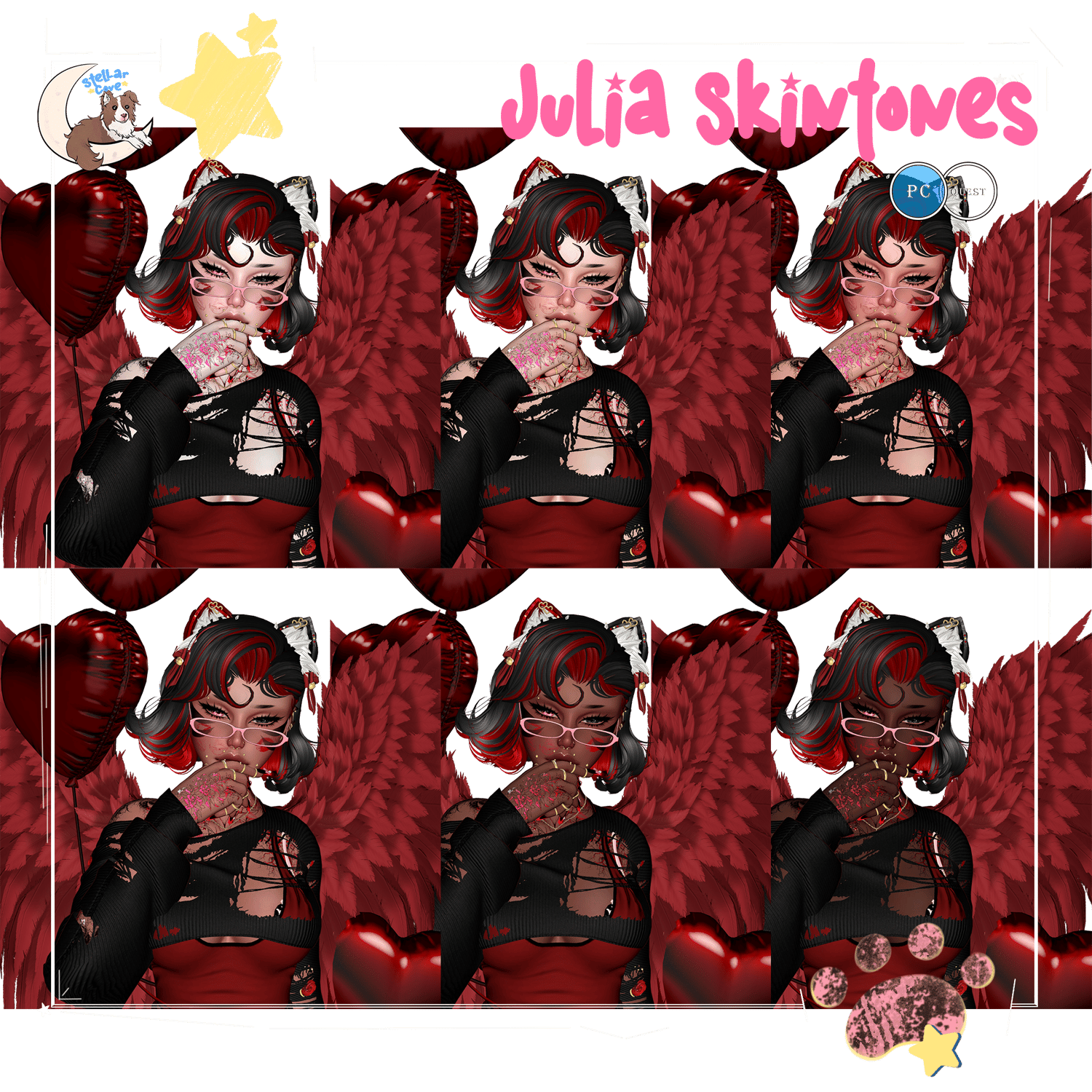 all pics are unedited and taken in-game(expression and skintone pics taken in unity!), I only added my border and logo as well as pic credits!! Toggle Showcase at the end <3