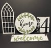 Farmhouse Party of ... set for interchangeable Wagon includes Cathedral Frame, Pallet Home Sign, Party of Sign and Welcome sign with 2 hooks. They're laser cut and hand painted or unpainted and range in size from 3-8"