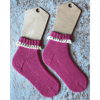 As a child, I used to love reading vintage boarding-school stories, and always imagined that the girls in them would wear cute little ruffled socks while eating their midnight feasts and drinking ginger beer. The Effie socks are the second in a series of sock patterns: the Midnight feasts collection, which pays homage to these books with a series of cute ankle socks, all featuring a frill around the cuff: show them off by wearing them with circle skirts and Mary-Jane shoes, or let the cuff peep out of the top of a pair of ankle boots for a really cute look. All the socks in the collection are knitted from the top down using a standard heel flap and gusset construction. The ruffled frill and first half of the turned-back cuff are knitted first, then inverted using a short row before knitting the rest of the sock. The foot length of the socks is adjustable to fit.
