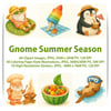 Gnome Summer Season - Clipart Set, Coloring Style and Stickers