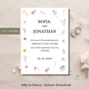 Create a beautifully romantic first impression with this wildflower wedding invitation template, featuring a delicate botanical floral design perfect for spring and garden weddings. This editable Canva invitation allows you to fully customize every detail—from names and dates to RSVP information—so your invite perfectly reflects your special day. Instantly download, personalize, and share digitally or print for an elegant, timeless wedding announcement your guests will love.
