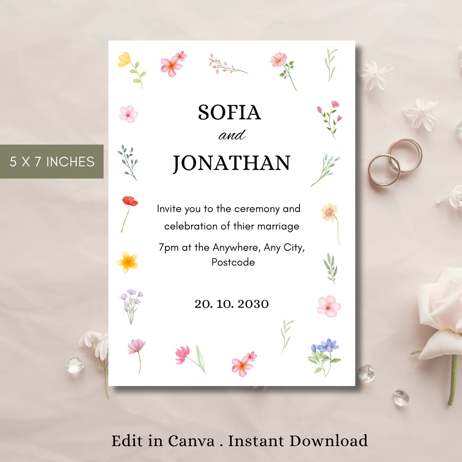- Wildflower Wedding Invitation Template 5x7 inches (good for printing)