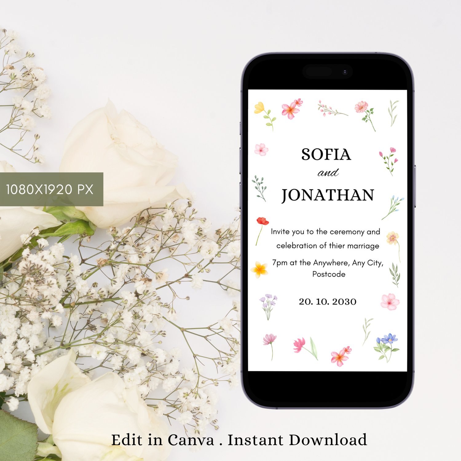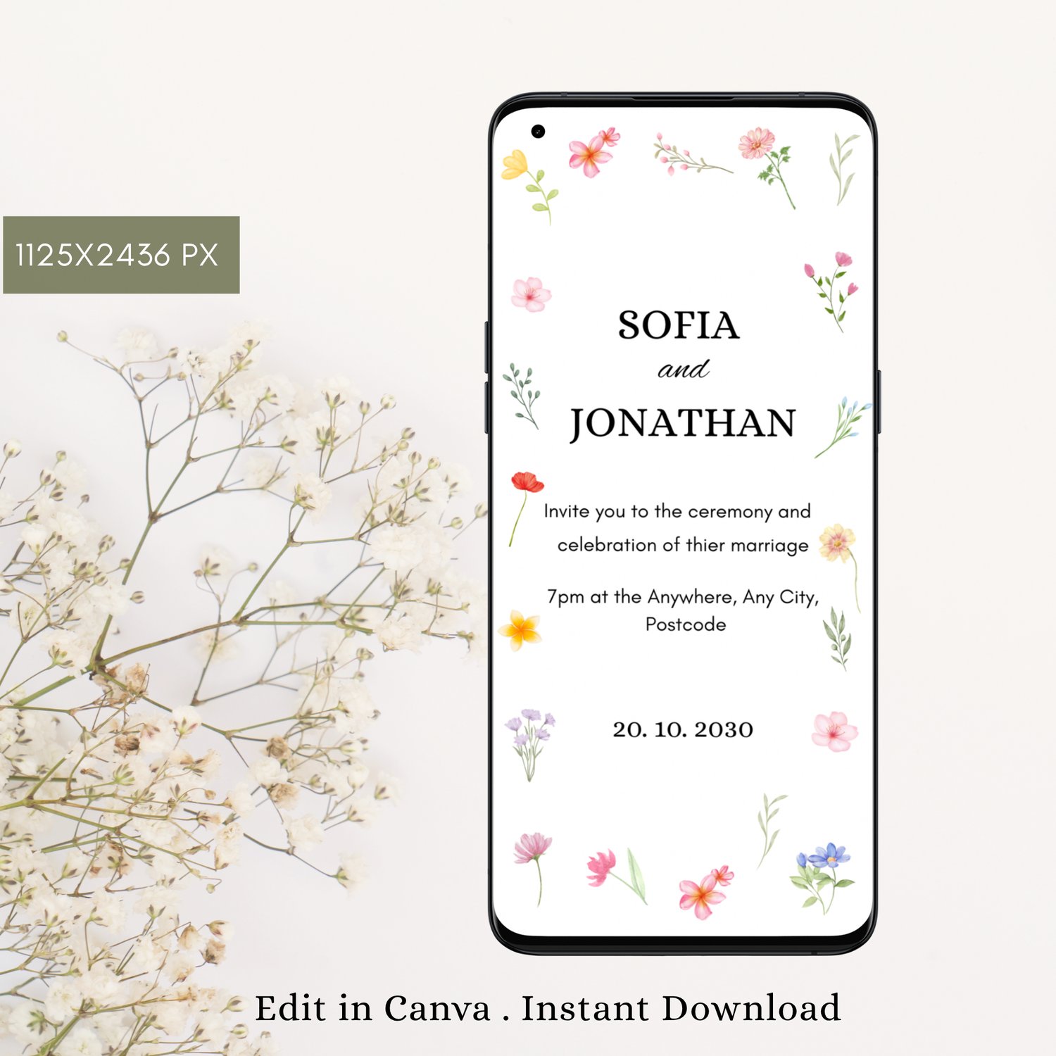 - Wildflower Wedding Invitation Template 1080x1920px (good for most smartphones)