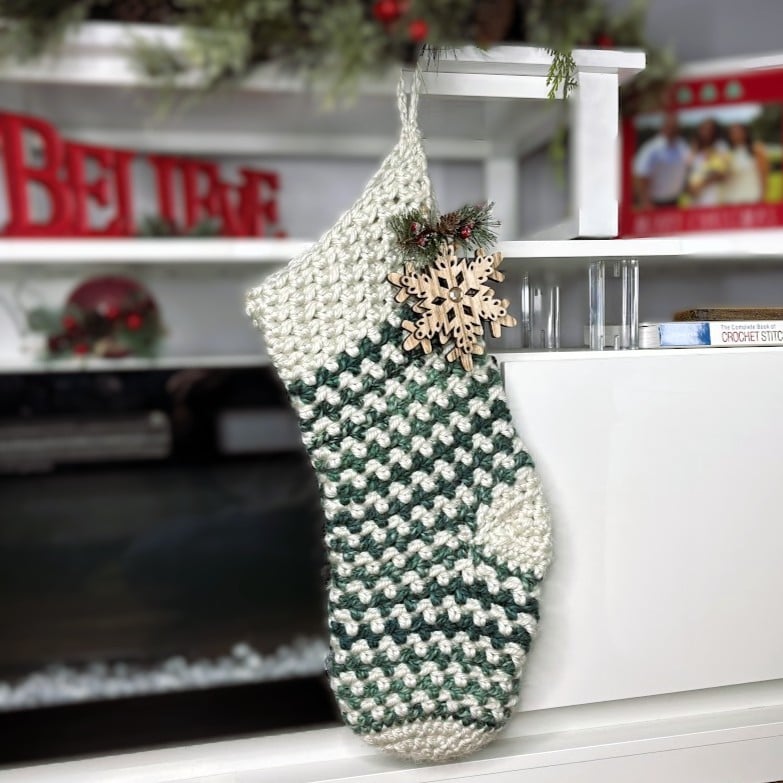 Bring handmade charm to your holiday decor with the **Wintergreen Christmas stocking crochet pattern**!