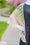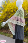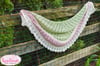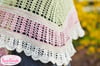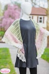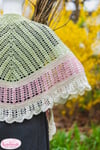 Spring is my favorite time of year. It's a time for starting over with new growth; the dreary days of winter are gone and the blossoms are blooming. This delicate shawl is worked in spring colors from the top down to the edging with fingering weight yarn.
