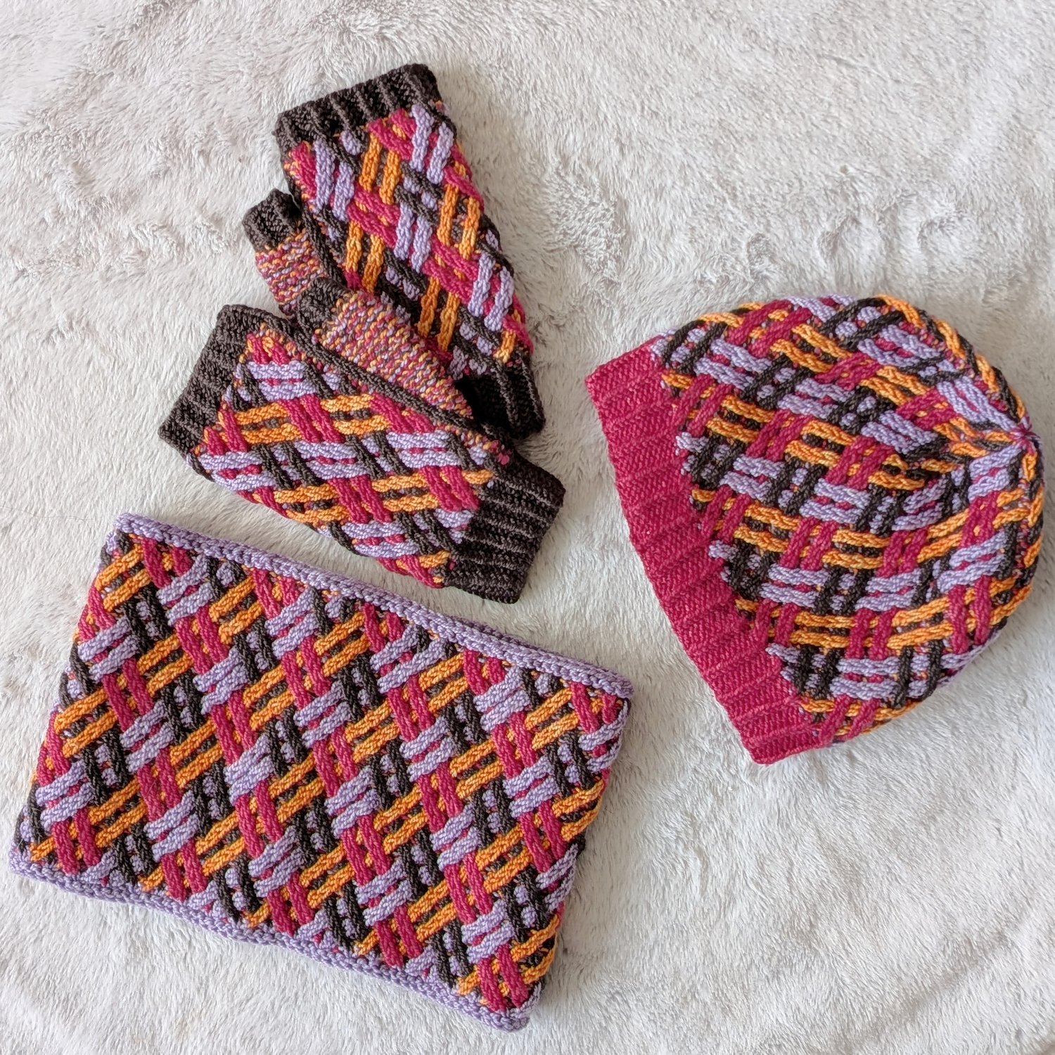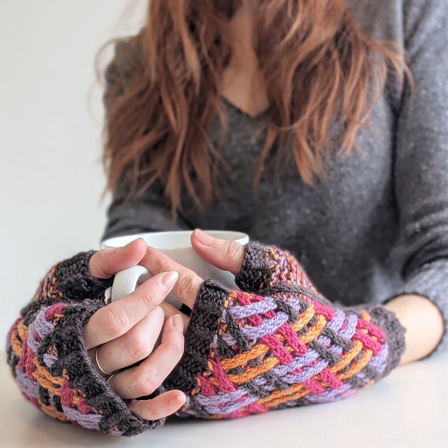 The fingerless mitts are for knitters with experience in Woven Knitting. How to get started: