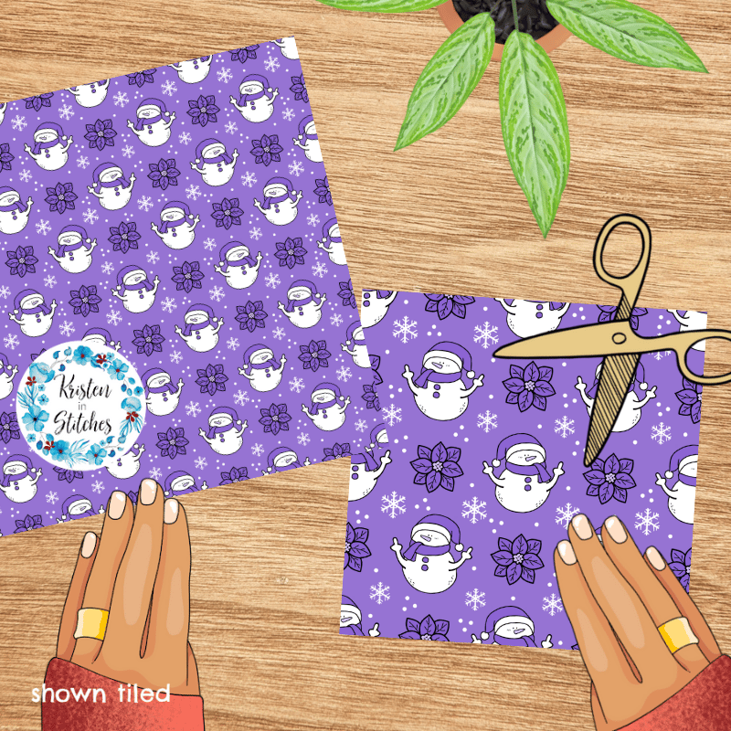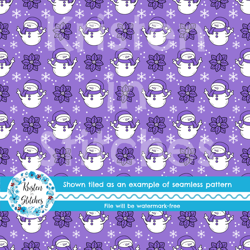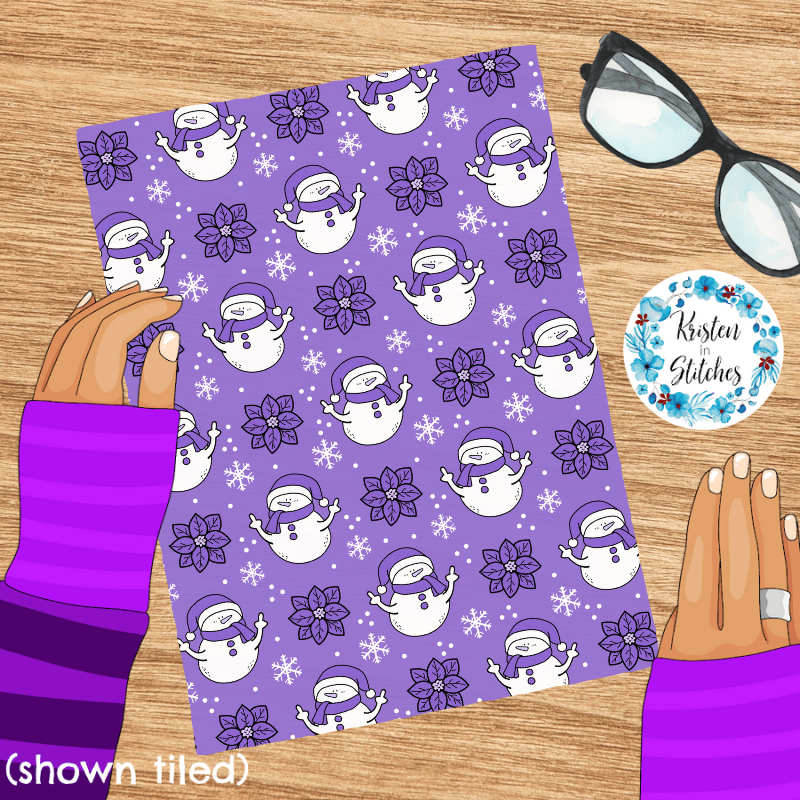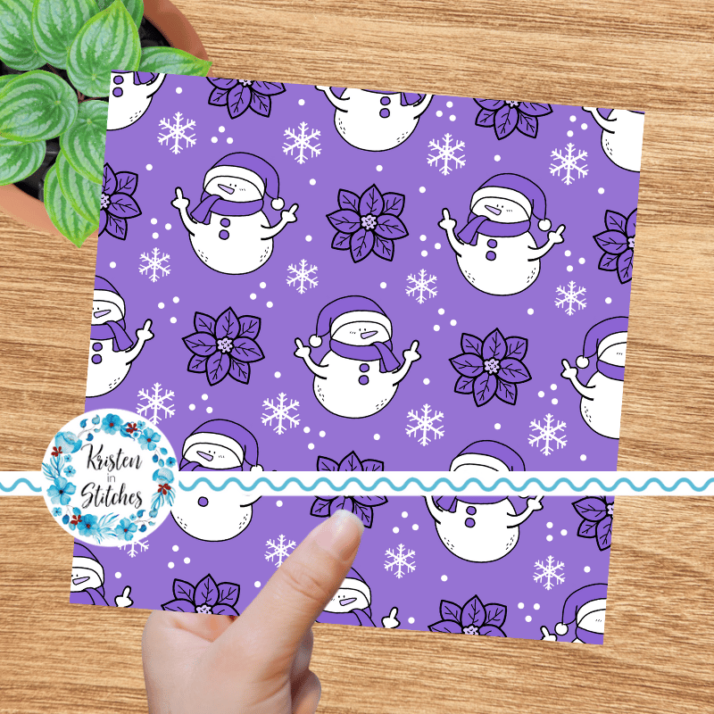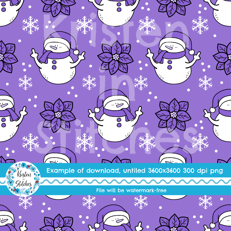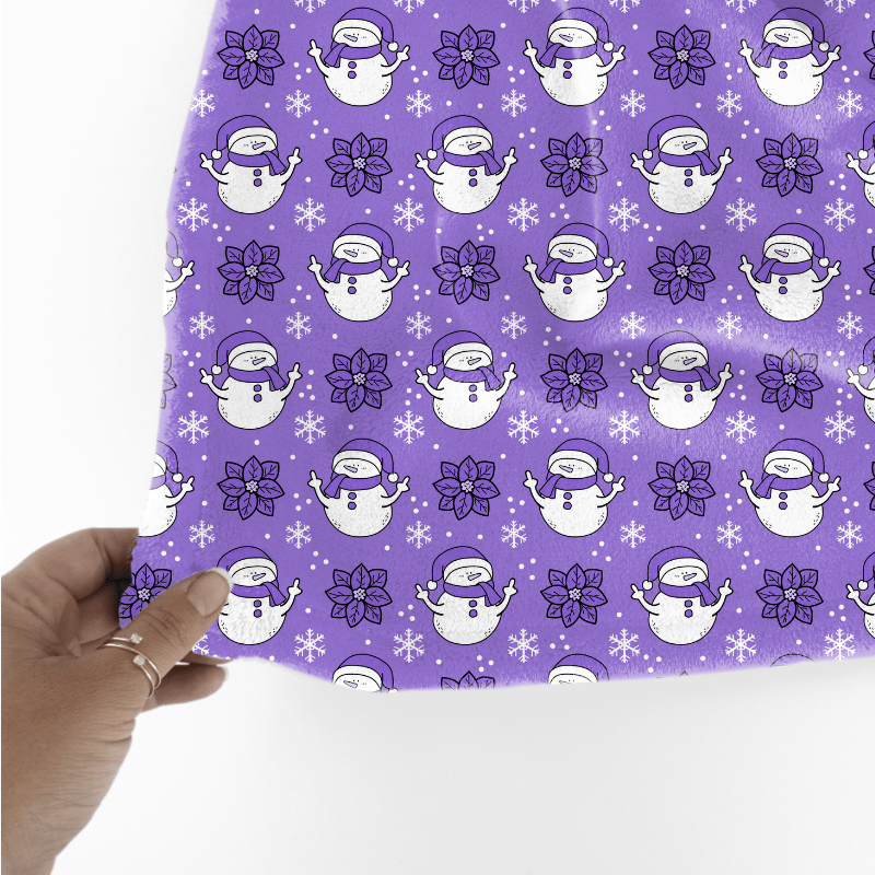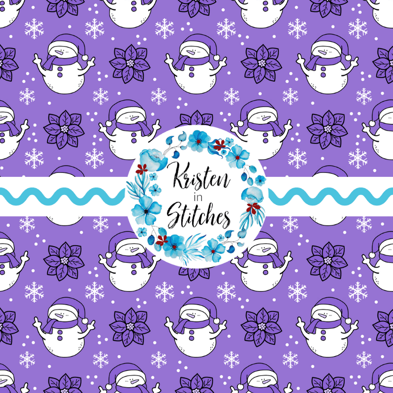 These sarcastic little snowmen are giving the double middle fingers! With poinsettia and snowflakes on purple.