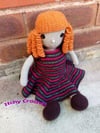 Rosie is a cute simple rag doll with a bobble stitch nose and bobble stitch thumbs, button eyes give her a cosy homely feel. Her hair is removable and comes with the outfit pattern, who wouldn't love to change their hair at a moments notice.