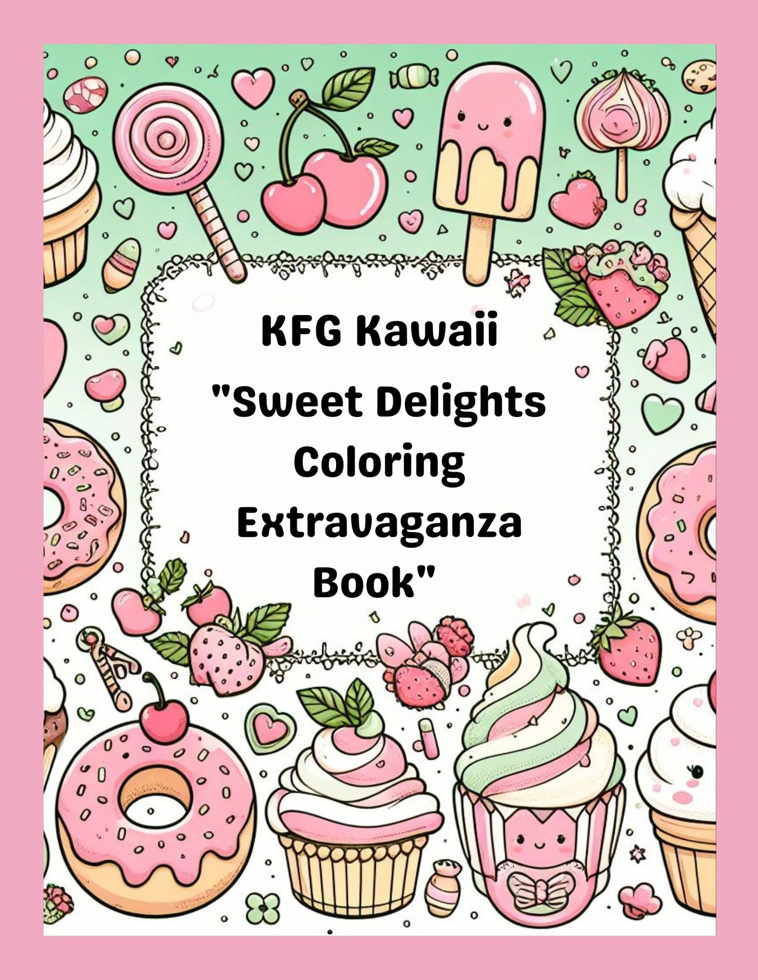 KFG Kawaii "Sweet Delights Coloring Extravaganza Book" featuring Cute Dessert, Food, and Fruits Easy Coloring Pages for Kids and Adult