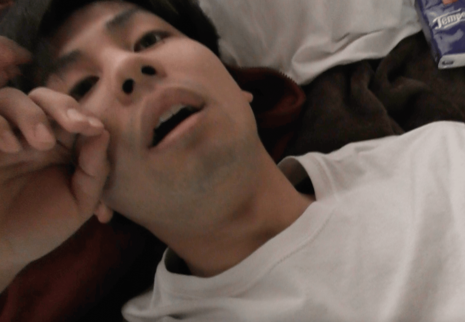 Taku is frozen while using a hair dryer. He is then handled while standing and then moved to the bed. Watch his surprised face. At the end his hair are dried while frozen.