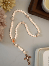 This beautiful rosary embodies classic grace and understated beauty. Handcrafted with devotion, it features lustrous cream pearls paired with delicate silver accents, creating a serene, timeless piece perfect for daily prayer and life's most sacred moments.