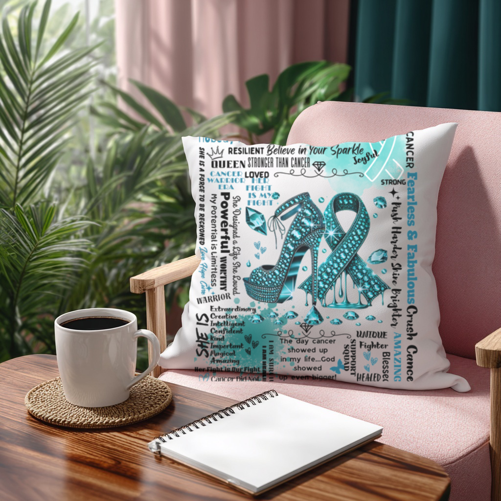 - Teal awareness ribbon theme – perfect for ovarian and cervical cancer support