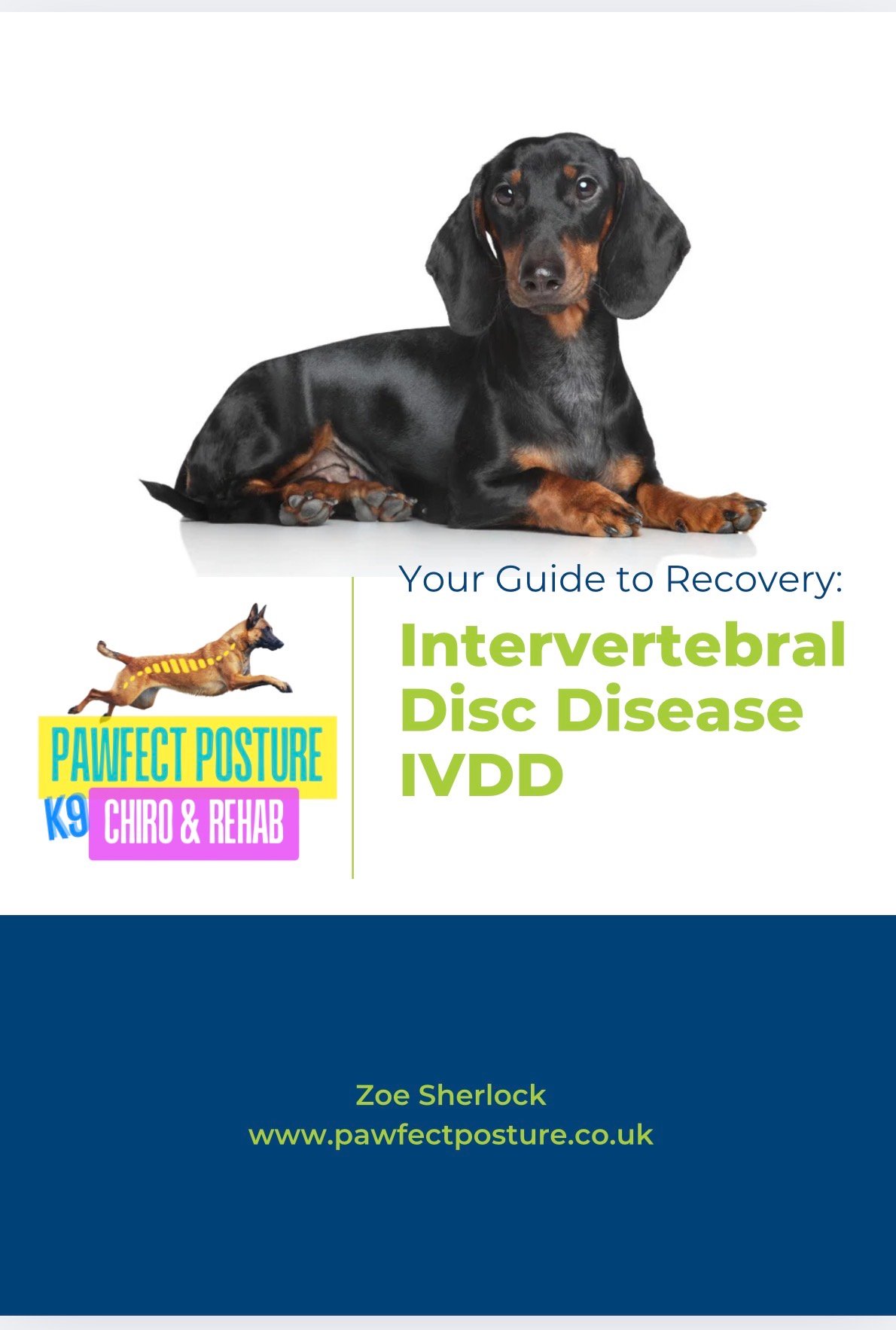 Your Guide to Recovery: Intervertebral Disc Disease (IVDD) is the calm, kind, step-by-step handbook you need right now. Written by RAMP-registered animal chiropractor Zoe Sherlock – who has guided hundreds of wobbly, paralysed, and scared dogs (especially sausage dogs) back to walking and wagging again.