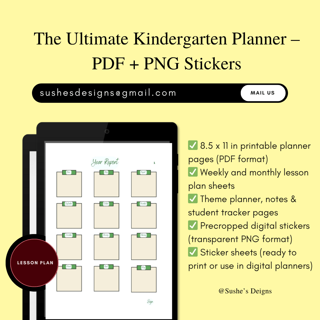 Stay organized, creative, and inspired with The Ultimate Kindergarten Planner — a digital toolkit designed for passionate LKG & UKG educators. This printable + digital bundle includes structured planning sheets and fun, functional sticker packs that help you plan your lessons with clarity and ease.