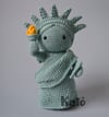 PDF digital crochet pattern and tutorial for a cute Lady Liberty toy.