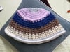 The body of the hat is worked with regular 4ply and 5.5mm hook. The faux fur trim adds an interesting touch to the brim.