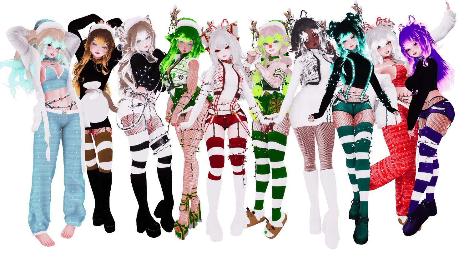 ₊❅. -> Accessories/ Vest, Robe, Garter, Candy Canes, Santa Hat, Holly, Suspenders Upper, Suspenders Lower, Christmas Lights Hips, Christmas Lights Left Arm, Christmas Lights Right Arm, Christmas Lights Thigh, Thigh Highs, Glasses, Necklace