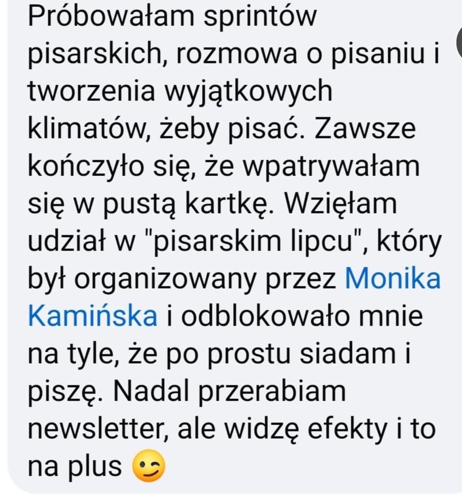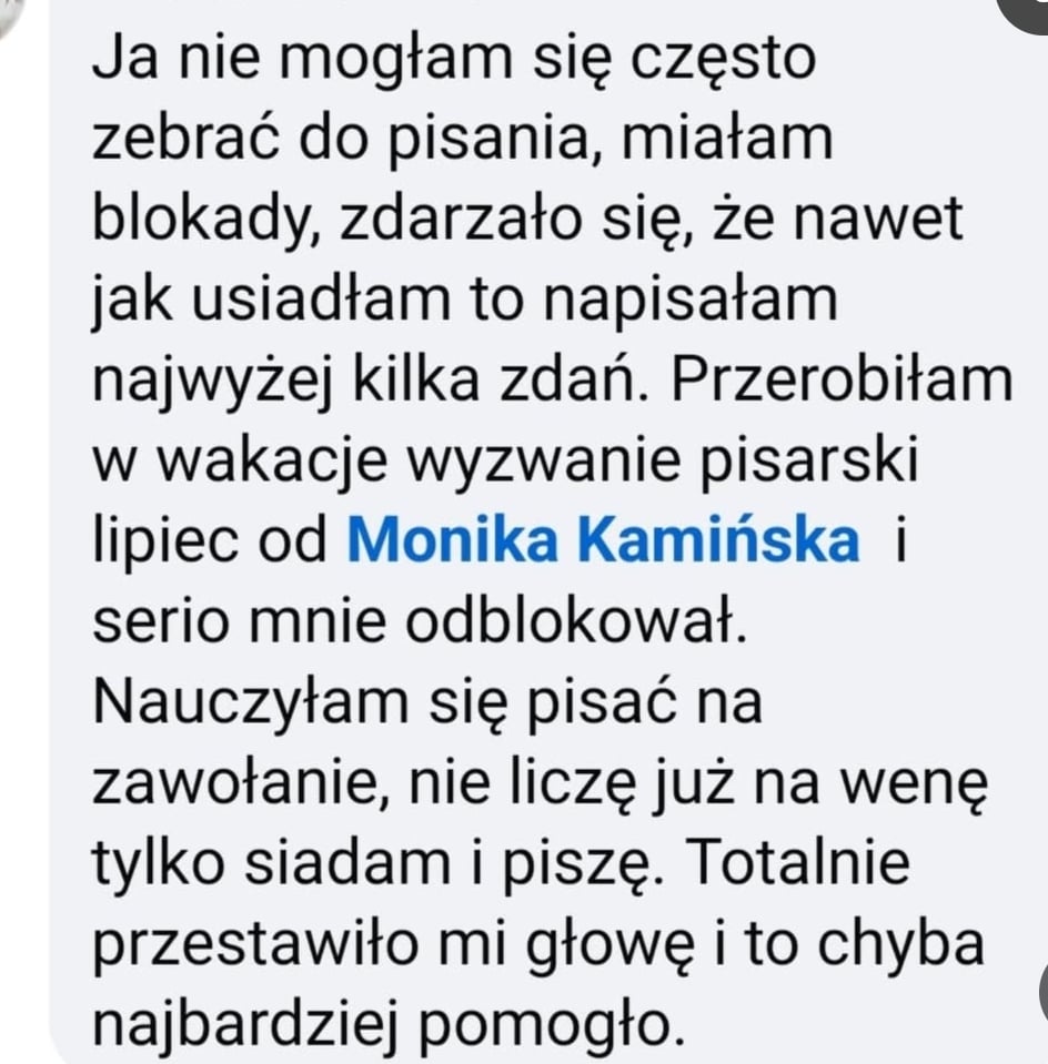 - dopadają ich blokady pisarskie i nie wiedzą, jak z nich wyjść.
