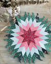 As a sampler quilt, not only does this quilt feature different blocks, it utilizes different sewing techniques. Beginning at the center, each round is comprised of panels of English paper pieced (EPP) blocks, that are then machine sewn from the center outwards to create the quilt top.
