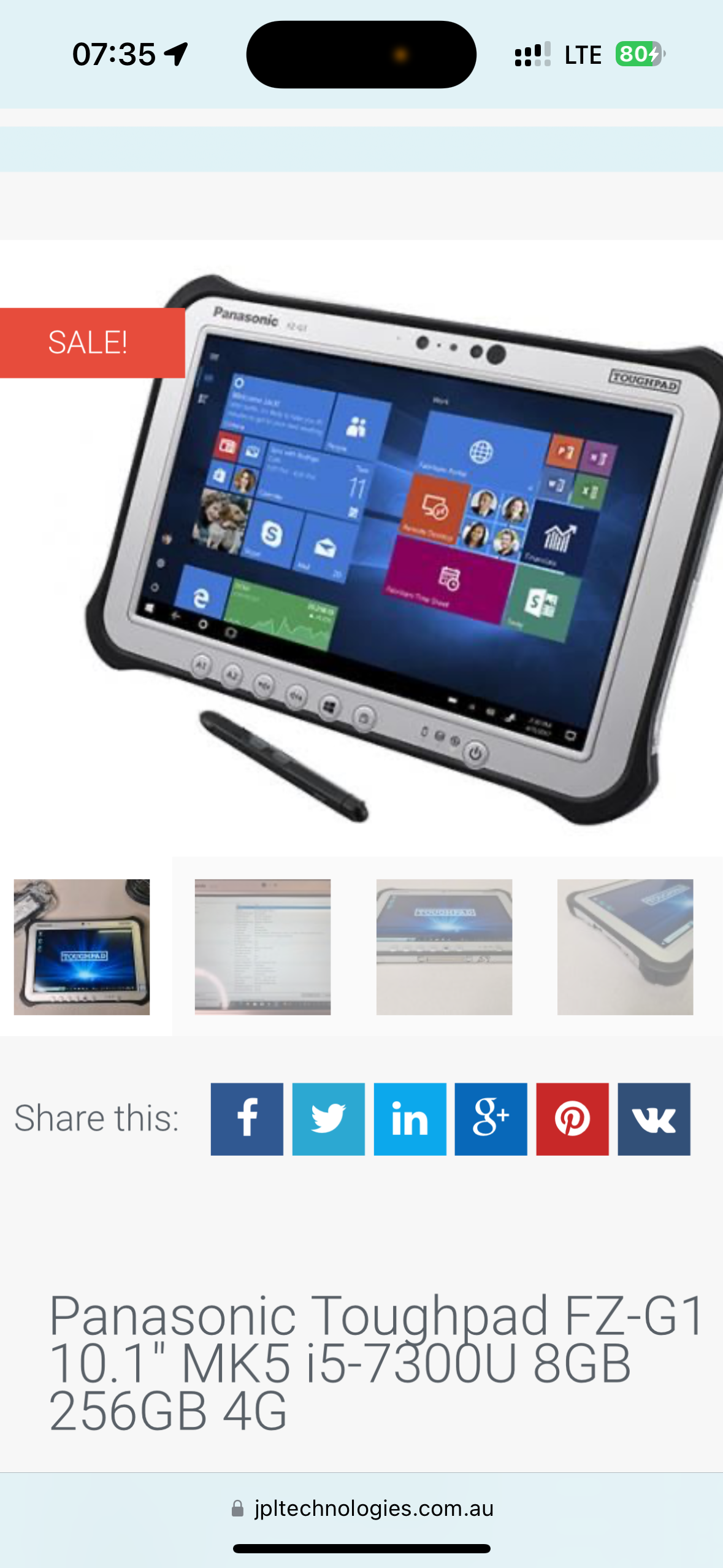 Panasonic Toughpad FZ-G1 10.1″ MK5 i5-7300U 8GB 256GB 4G
