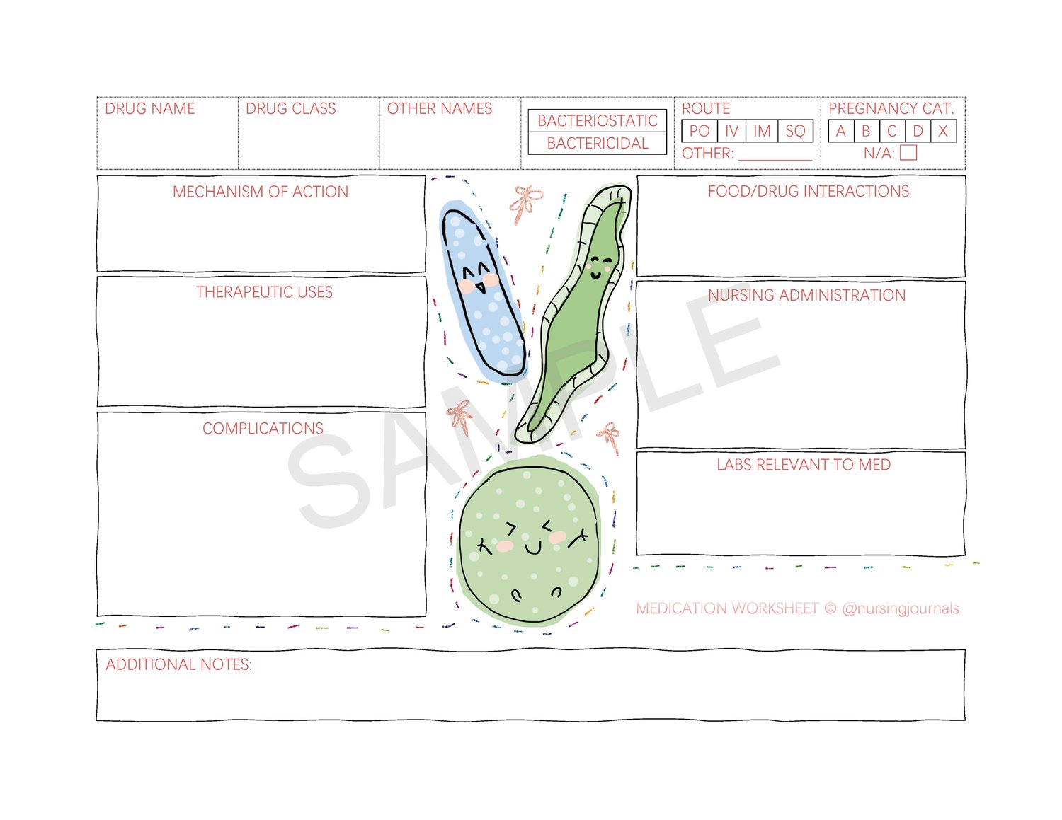 I had fun making this template, I think this is my favorite one yet. This medication template comes with emotional support microorganisms to help you get through your pharm studying <3