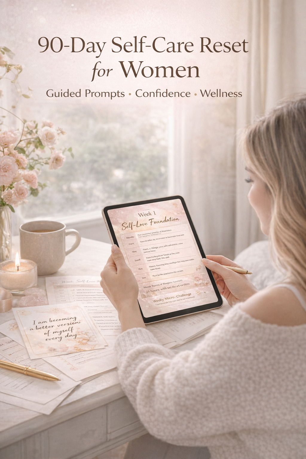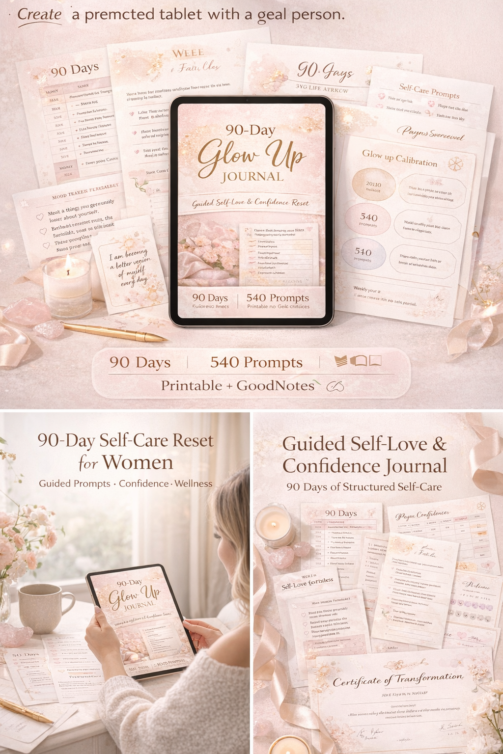 90-Day Self-Care Glow Up Journal for Women | Guided Self-Love, Confidence Reset & Wellness Tracker Printable PDF + GoodNotes