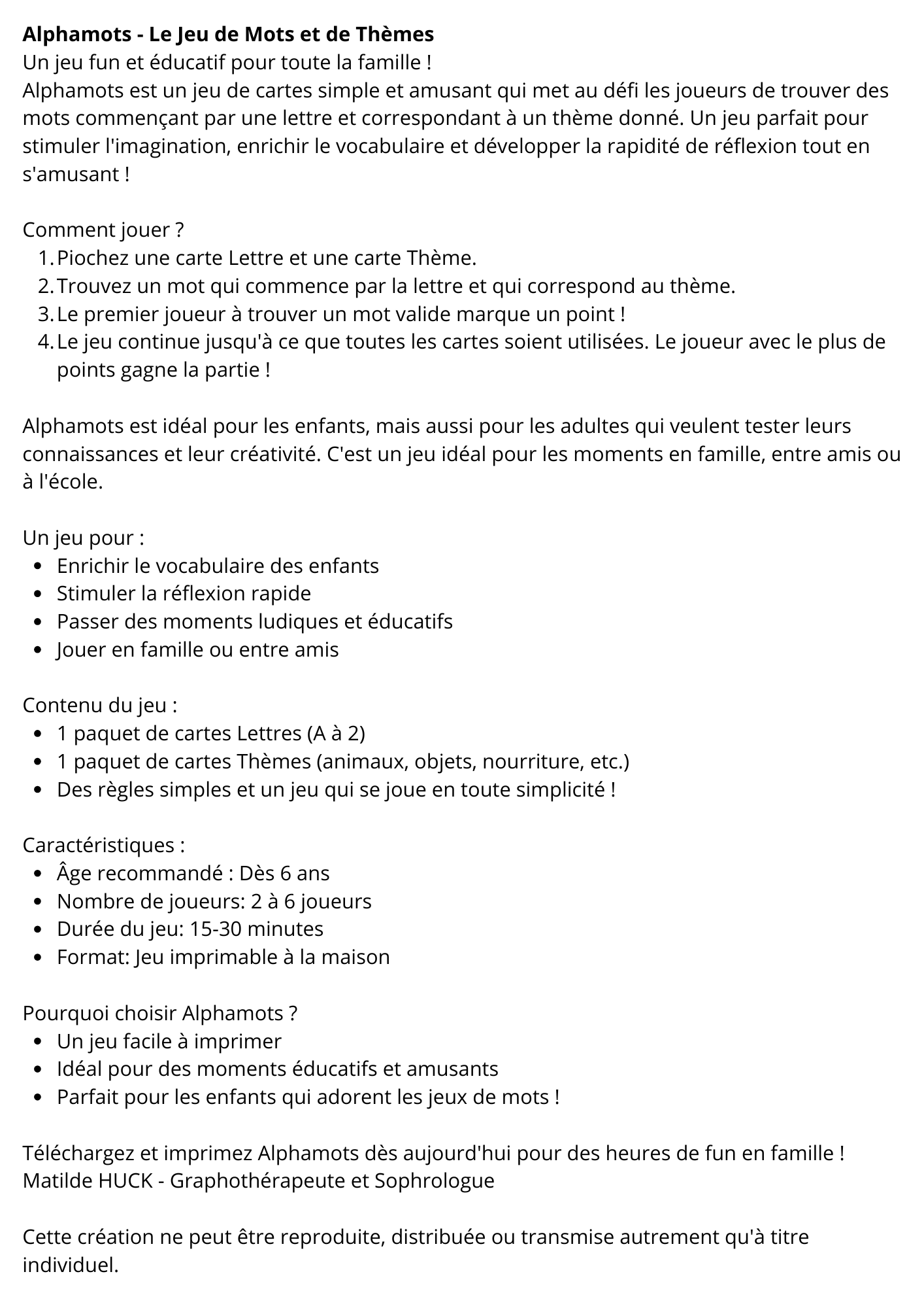 Jeu : Alphamots