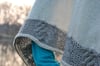 Contrast Color: 125 yards (114 m) aran weight yarn. Shown in Foxhill Farm Cormo (100% cormo wool; 195 yards/113 g), Silver.
