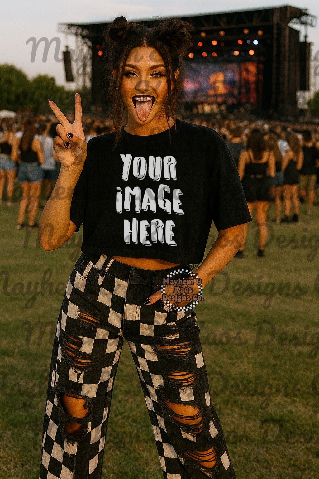 Concert checkered black crop