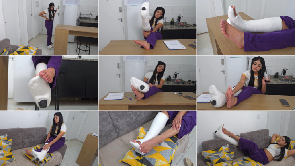 - Melissa studies while showing off her cast and feet. Then, she gently runs her hands and foot over the cast. Wiggling toes. Interaction with cast, and cast and toes close-up.