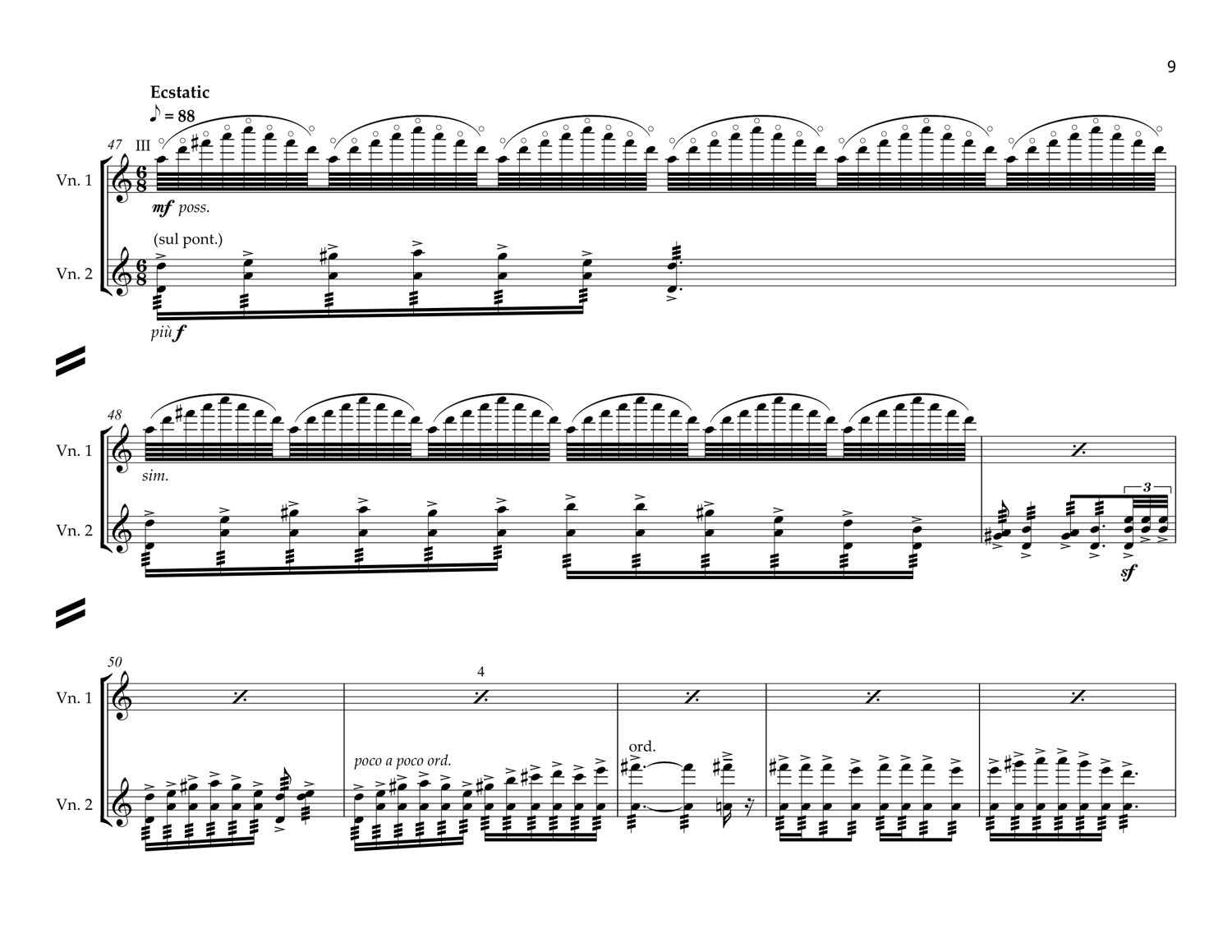Death is my shadow. was written for Eric Nilsson's Fiddler X private concert series in St. Paul Minnesota. Eric, the brother-in-law of Garrison Keillor, is a lawyer by trade, but like his sisters, plays a string instrument. His annual concerts are filled with fun presentations around a certain theme. The 2019 theme was J.S.Bach. The commission stipulated that the piece had to reference the Bach D minor double concerto (second movement) and another influence, such as music from Asia. This led me to kulintang and gamelan music. Were Bach to visit Indonesia and Mindanao, he might have enjoyed the intricate interweaving of melodies in the gamelan orchestra (which pre-dates Bach's own music by about five centuries). He may have also enjoyed the rapid toccata-like music of the Kulintang gongs.