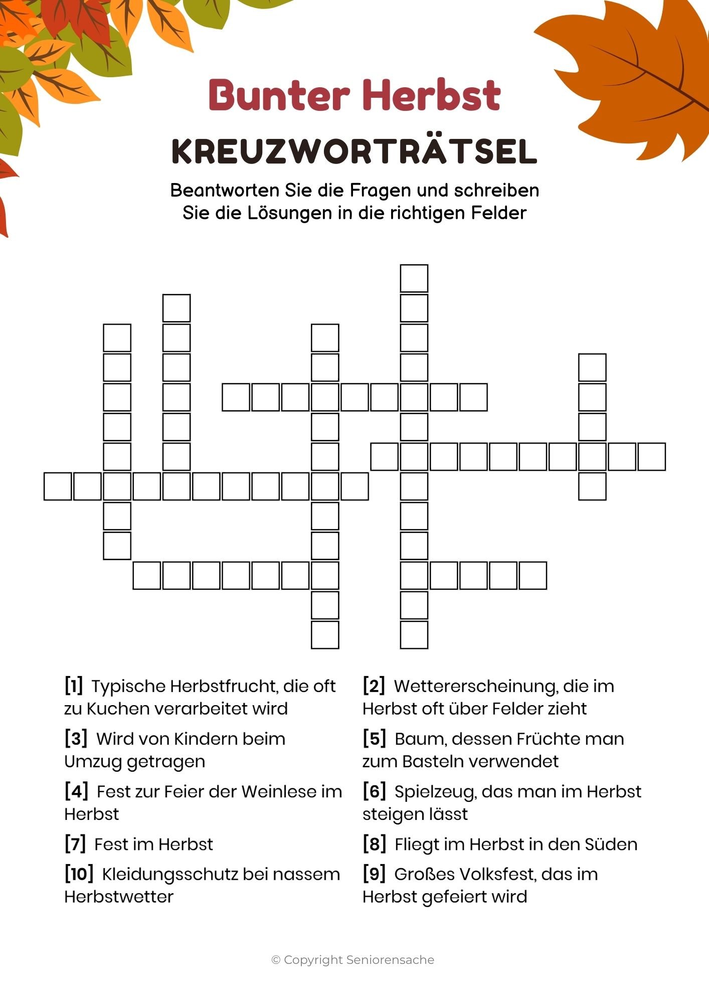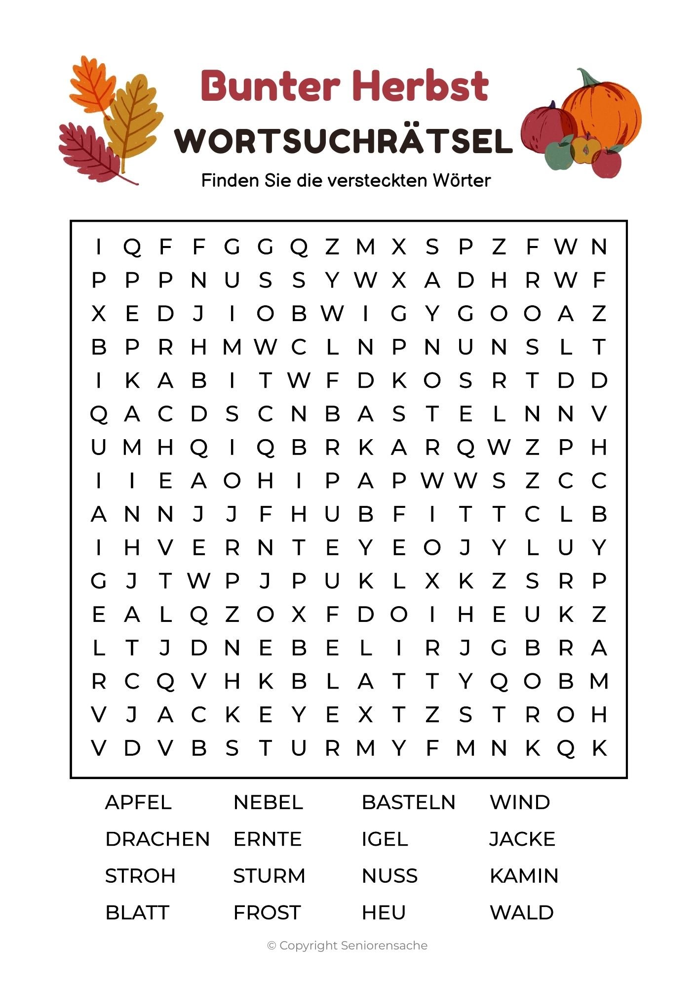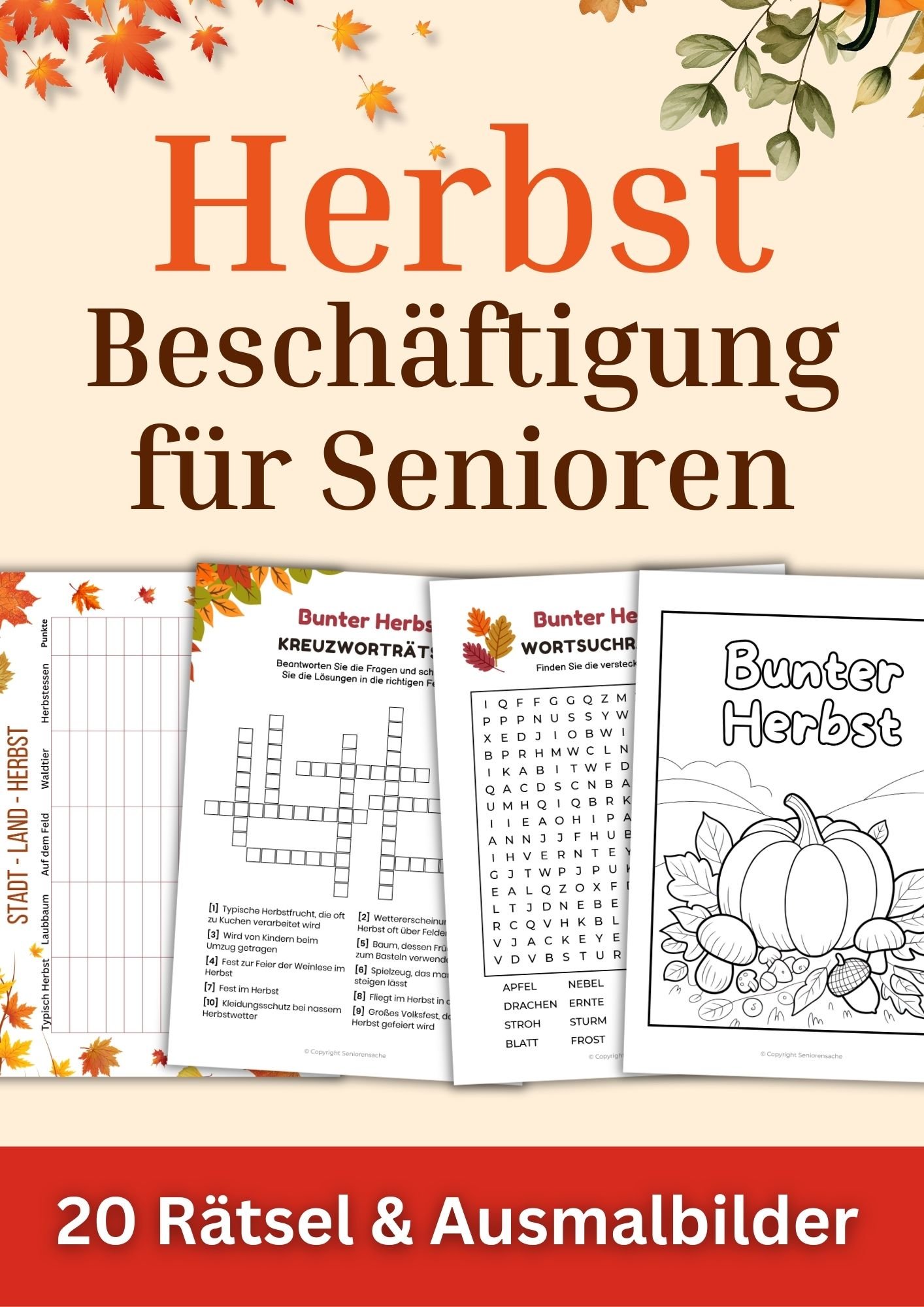 Herbst Beschäftigung für Senioren: Rätsel, Geschichten und Ausmalbilder zum Ausdrucken