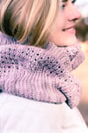 A comfy infinity scarf with fun construction, the Yoli Cowl has garter stitch edges framing lace mesh worked with short rows. The edges grow wider and narrower, while the short rows add ease and dimension, allowing the cowl to scrunch and tuck cozily around your neck and head. Worked sideways from a provisional cast on and grafted, this extra long reversible cowl can be worn right off the needles, either as a long scarf or double-wrapped around your neck or head to keep out the chill.