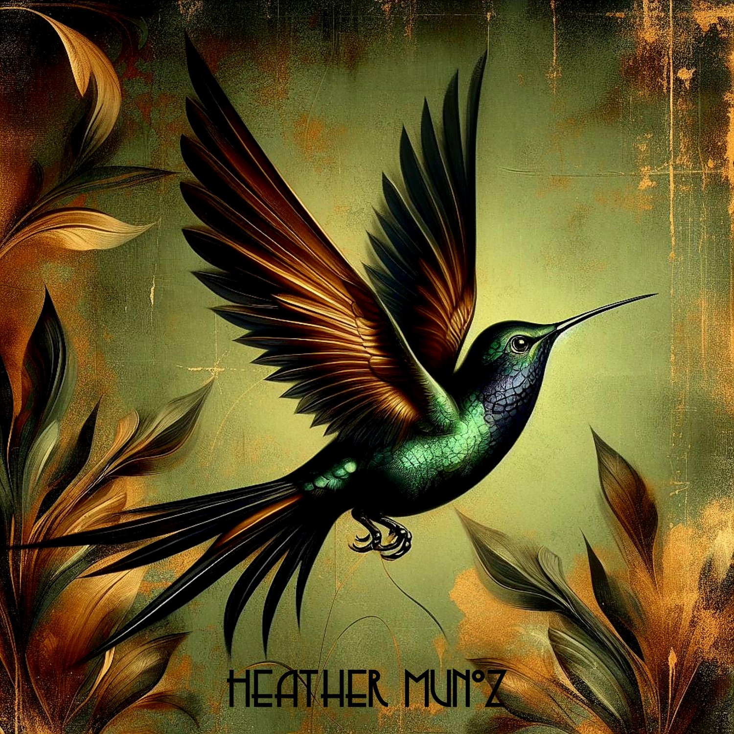 Vintage Hummingbird in green black and gold colors. Digital download only.