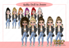 Instant digital download of our Selfie Doll in Jeans Character Doll Bundle PNG (93 PNG’s)