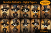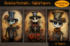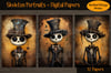 The 12 portraits of skeletons bring an eerily beautiful touch to any Halloween paper project.