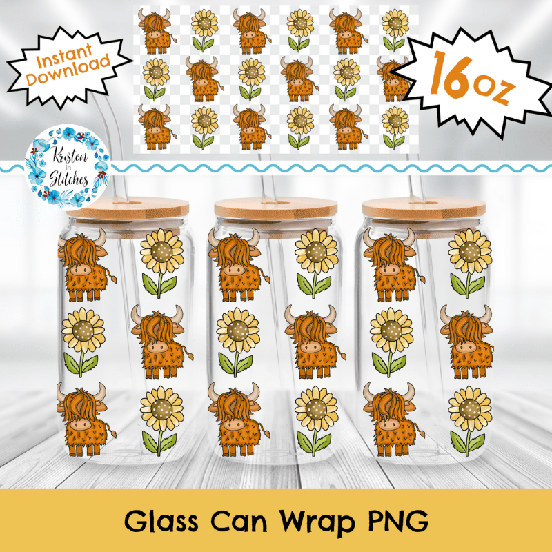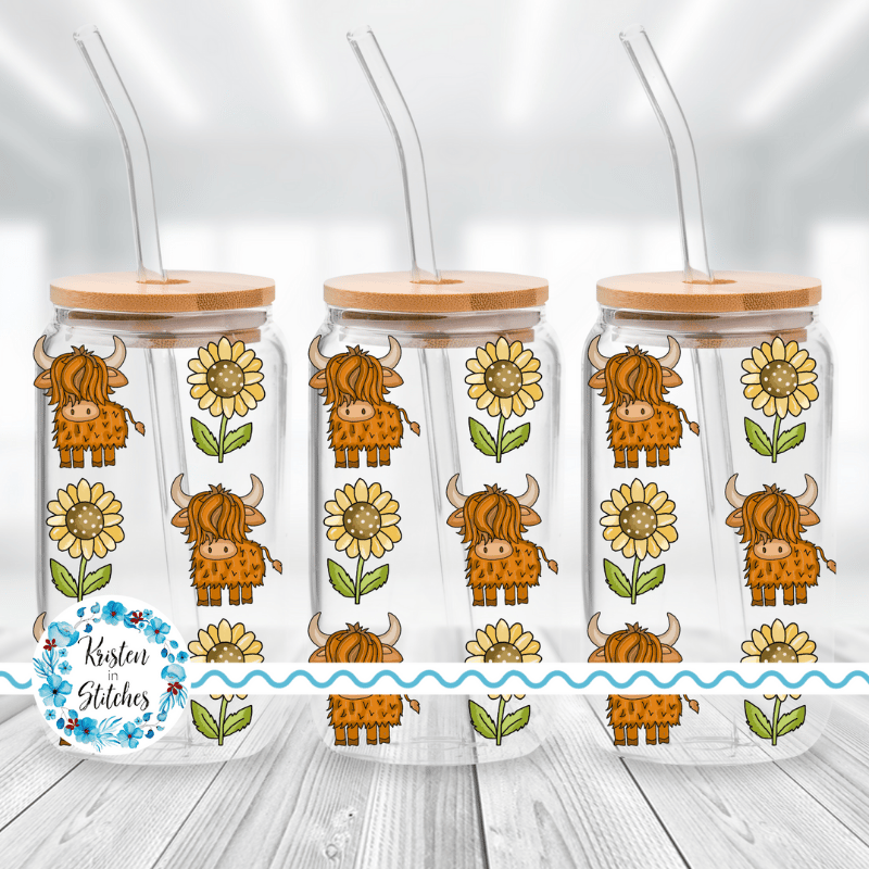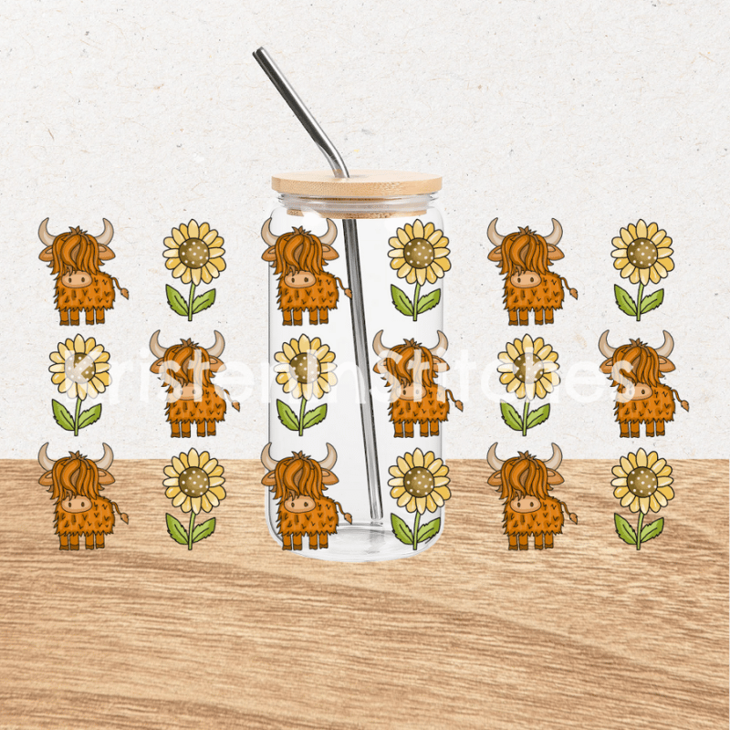 Highland Cows and Sunflowers Glass Can Wrap Transparent PNG, Farm Life