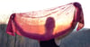 Small (Large): wingspan 51”/ 130cm (60”/ 152.5cm) by depth 13”/ 33cm (19”/ 48cm). Shape is a half moon shawl.