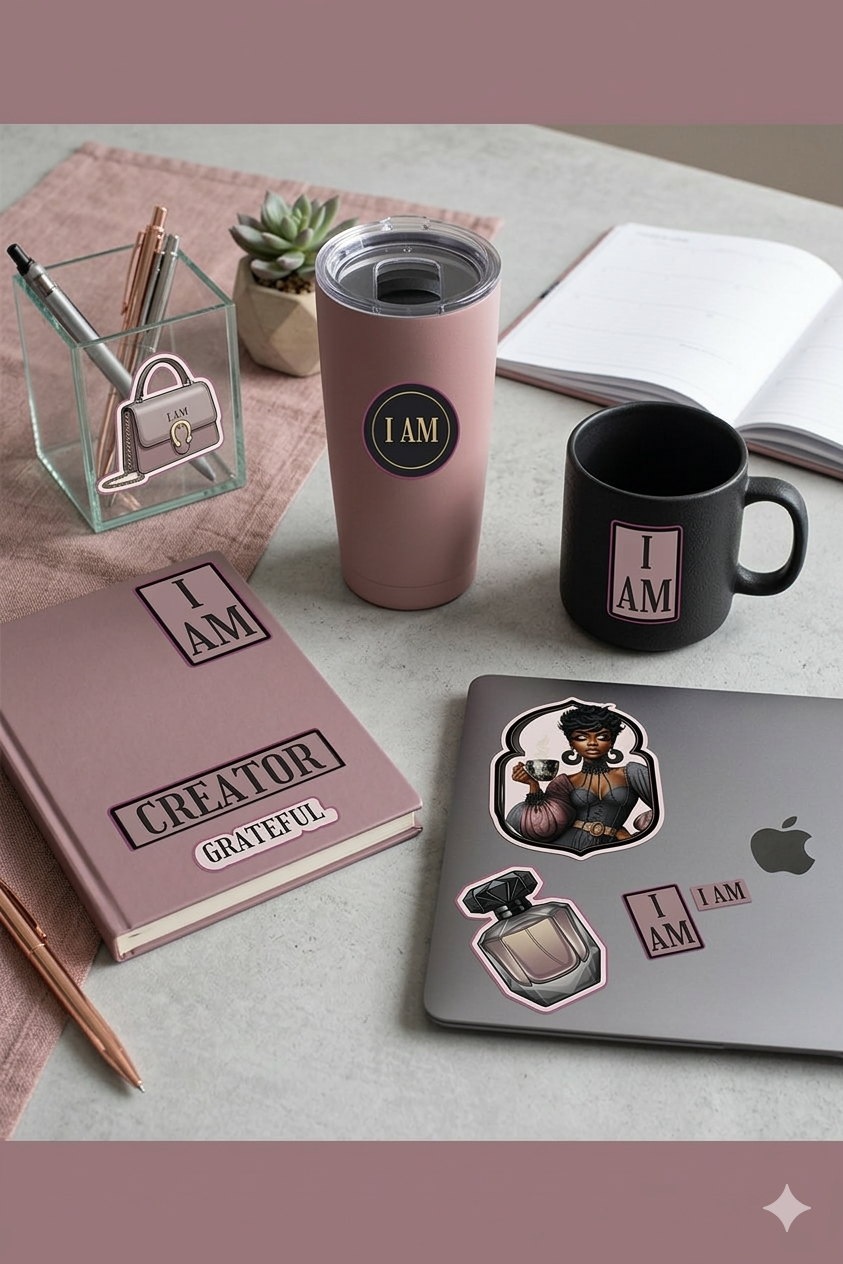 • Versatile Designs: Includes the "I AM" Diva, luxury handbag , "I Am" mug, and various "I AM" affirmation