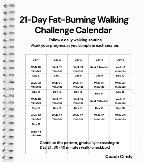 🗓️ 21-Day Fat-Burning Walking Challenge Calendar