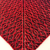 Between the entwining cables and the bold red and black colors, evocative of ancient power and royalty, this shawl became the Entwined Queen’s Shawl. I really hope you enjoy it!