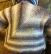 Knitted in one piece to avoid (or reduce) seaming. Uses mitred squares and each piece is picked up from the last, join as you go.