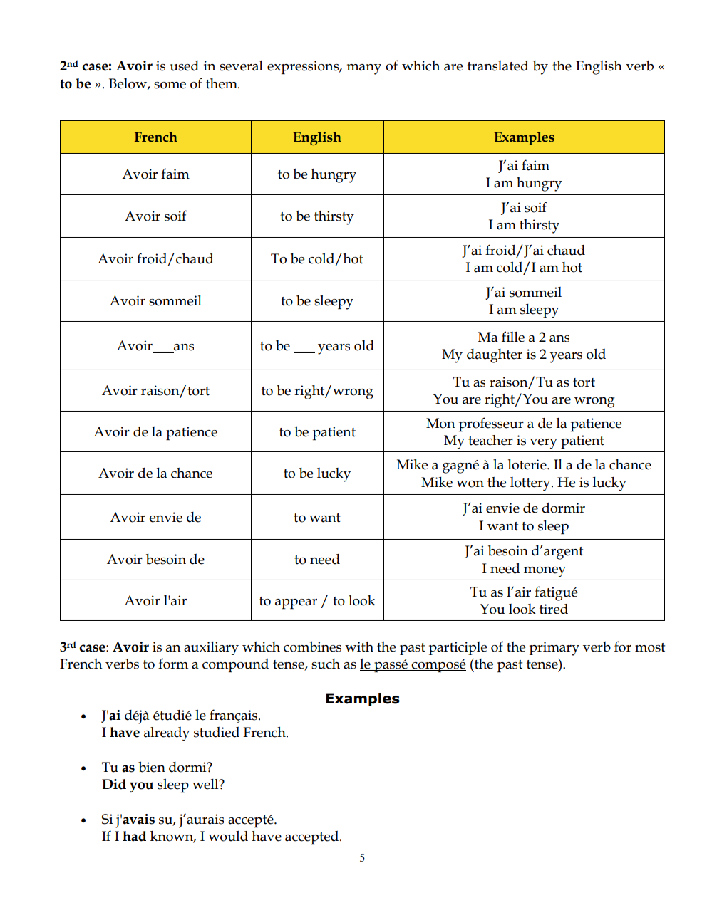 - The verb Avoir
