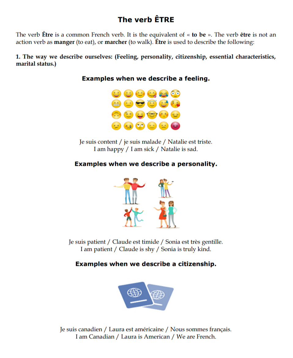 - The verb Être