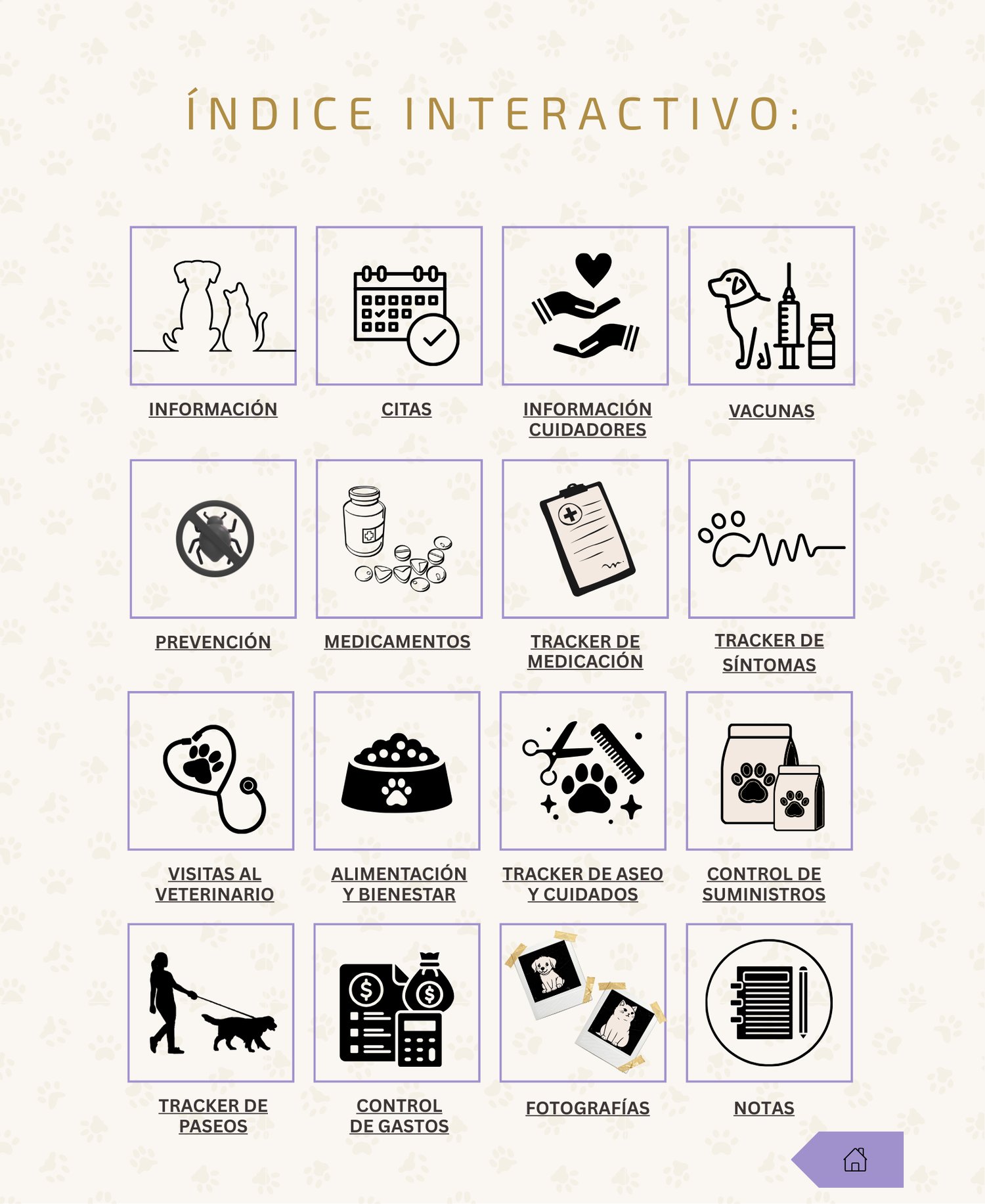 Incluye espacios para planificar el bienestar físico y emocional de tu mascota, reflexionar sobre su desarrollo, y atesorar cada avance y recuerdo compartido.