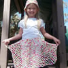 The Rainbow Sherbet Set is a very versatile set for your young lady. The model is wearing it over a T-shirt and leggings. Is it a skirt or a Poncho?? The hat has a cute brim making it great for every day. This set is sure to please any little girl. The skirt can also be worn as a poncho. The hat has a little brim to take away glare. This set can be worn as she grows because of the adjustable cord tie.