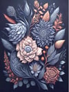 Adorn your walls with the enchanting beauty of nature with this captivating wall art/paper. The design features a mesmerizing blend of colors, including shades of burgundy, grey, yellow, pink, and peach. Delicate and vibrant flowers painted in these hues bring a touch of elegance and charm to any space. The intricate detailing of each petal and the subtle variations in color create a visually stunning display that captures the essence of a blossoming garden. Complementing the floral arrangement, graceful grey and green leaves gracefully intertwine, adding a soothing touch of nature's tranquility. Let this exquisite artwork transform your surroundings into a haven of beauty and serenity.