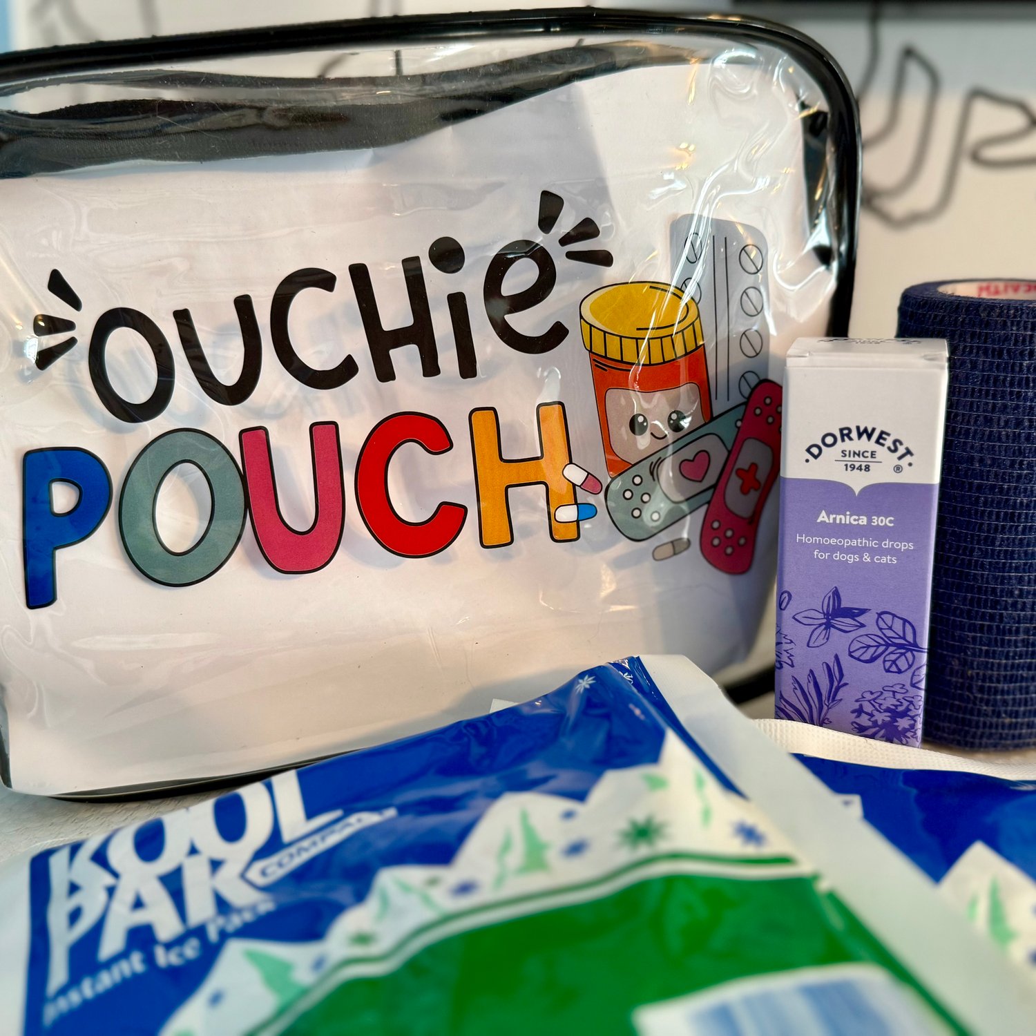 The Ouchie Pouch is a compact support kit designed with active dogs in mind. Perfect for those minor bumps, twists, or falls that can happen mid-run or in training.
